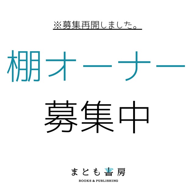 ※必ず以下の詳細をご確認の上、お申し込みください。 【概要】 築60年超のレトロな長屋を、地域のクリエイターたちがリノベーションして創り上げる新たな文化スポット。そこにシェア型書店「まとも書房」が2025年7月13日にオープン! この度、共に書店を育んでくれる棚オーナーを先行募集中。セレクトしたこだわりの古本やZINE、雑貨などを販売可! オーナーだけのイベントやZINE制作ワークショップなども! 創造し、発信し、交流する、次世代型書店です。 【棚について】 ・幅595mm×高さ280mm×奥行300mm ・新刊本、古本、ZINE、雑貨、イラスト等、本を中心になんでもOK(食品等はNG) ・テープや画鋲での装飾も自由 【費用について】 ・月額3000円(日割り計算ナシ) ・初月のみ3000円→50円へ割引(申し込み時に必ずクーポンコード「259Q3RUV」を入力してください。お忘れの場合は初月より費用が発生しますのでご注意ください) ・販売手数料なし ・売上は全額オーナー様へ分配(ご来店時に精算) 【申込方法】 このまま、まとも書房公式ショップ(base)より、お申し込みください(初月割引クーポンコード「259Q3RUV」の入力をお忘れなく)。 【搬入方法】 申し込み後にお送りする、公式LINEグループより、カレンダーを共有し、詳細の注意事項もお伝えします。また、郵送での搬入も可能です。 ※郵送の場合は、店主お任せでの陳列及び装飾となります。 【注意事項1】 商品には、必ず「屋号」「値段」「商品名」を記載したスリップ(または付箋など)を挟んでください。なければ集計時に、どなたの売上かがわからなくなります。 【注意事項2】 盗難、紛失、破損などが生じないよう最大限配慮しますが、こうしたリスクはゼロではありません(そのためあまりにも高価な希少本などは販売されないことをおススメします)。店舗側では責任を負いかねますのでご了承ください。 【注意事項3】 退会される場合は、公式LINEまたはお電話、口頭にてご連絡ください。こちらにて退会の手続きを行います(月額費の日割り計算は行っておりません。その分、初月割引という形で対応させていただいております)。 ====================== 【住所】 大阪府枚方市枚方元町4-70 【アクセス】 ・枚方公園駅より徒歩5分 ・枚方市駅より徒歩10分 【お問い合わせ】 080-1499-1991 [email protected] ======================